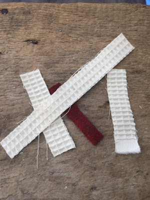 A shame the waffle weave didn't work. If you lived close I'd take over my 'fray check' for you to seal the edges so it would stop the ravel. Wonder how they make that skeleton stand alone without a prop? As normal I had no visitors last night either but did have candy at the ready. Guess I'll end up eating those Peanut Chews and Reese's Peanut Butter cups by myself.