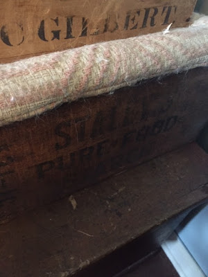 This small bucket bench use to ne in our loving room. It held my tiny crock bowls.